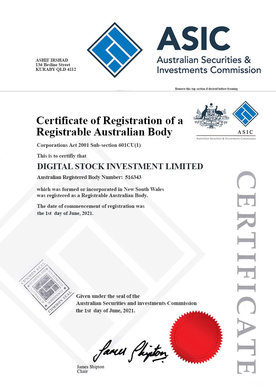 Yes. Digital Stock is a legally registered investment company incorporated and headquartered in Australia. Click Here to view our registration.